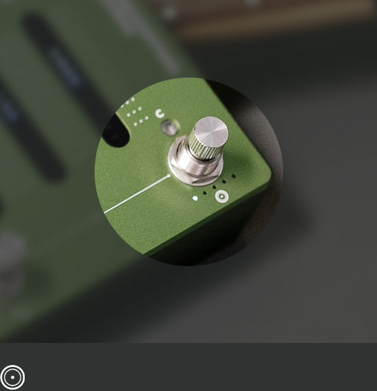 The Compression potentiometer is the one-knob solution for compression on the Aggressively Distorting Advanced Machine. This controls the amount of input gain to the compressor and intelligently applies the correct amount of makeup gain so that your signal is always driven at the appropriate level, no matter how much compression is applied.